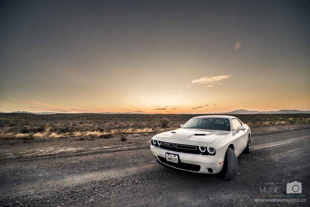 Říkám „kámo, potřebujeme něco přehnaně americkýho, jako je třeba Dodge Challenger“. Inu tak se i stalo a za chvilku jsme odjížděli směr Reno v bílém muscle caru. Jakmile jsme se vymotali z okolí Sacramenta, zahlásila navigace 750 km rovně, pak sjet z I80 a zhruba 100 km zase rovně. Navigaci jsem vypl a dal to neomylně napoprvý.