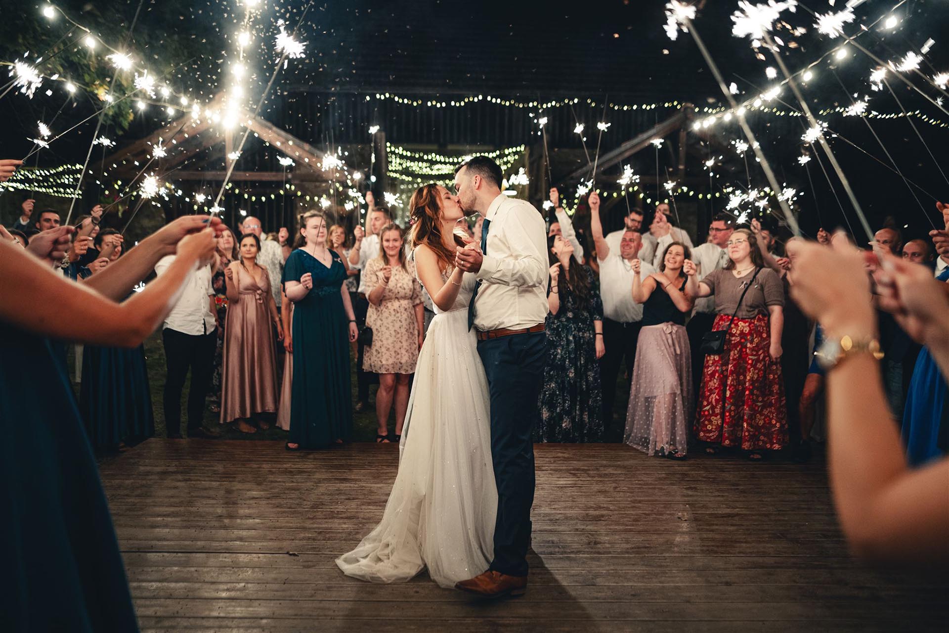 Běžně se dělá průchod špalírem, nebo tanec novomanželů v kruhu, popřípadě s šikovným mančaftem se dá zvládnout obojí. V obou případech je nejlepší, když hosté drží prskavky nad hlavou a vy, coby hlavní aktéři, máte ruce volné.